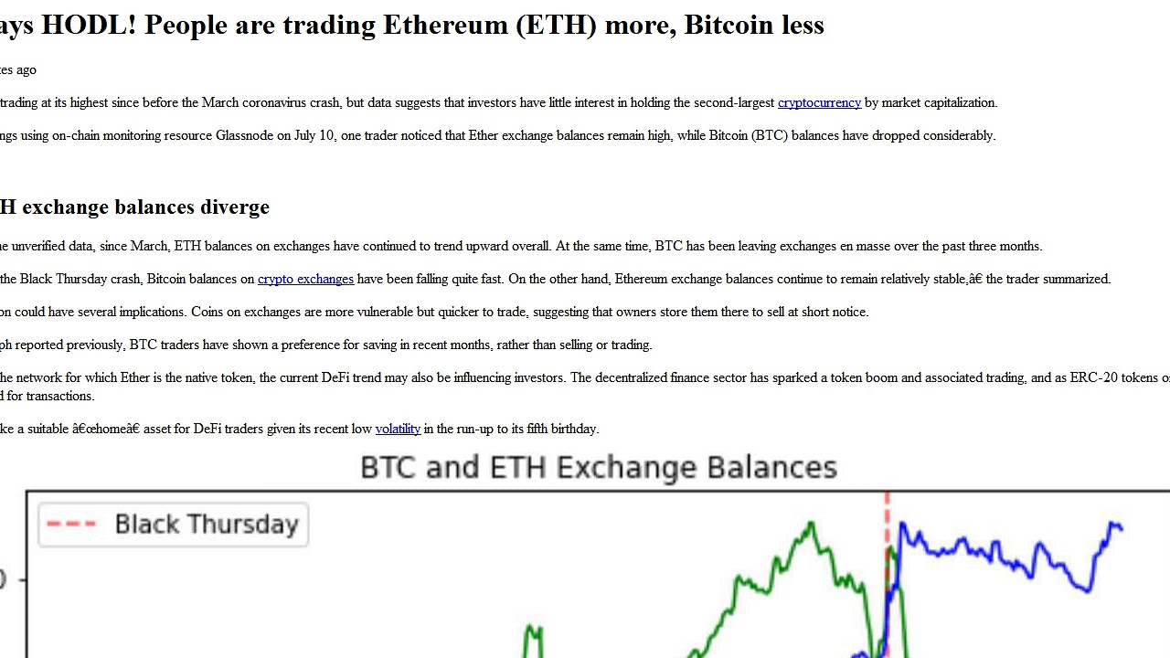 Data Says Hodl People Are Trading Ethereum Eth More Bitcoin Less