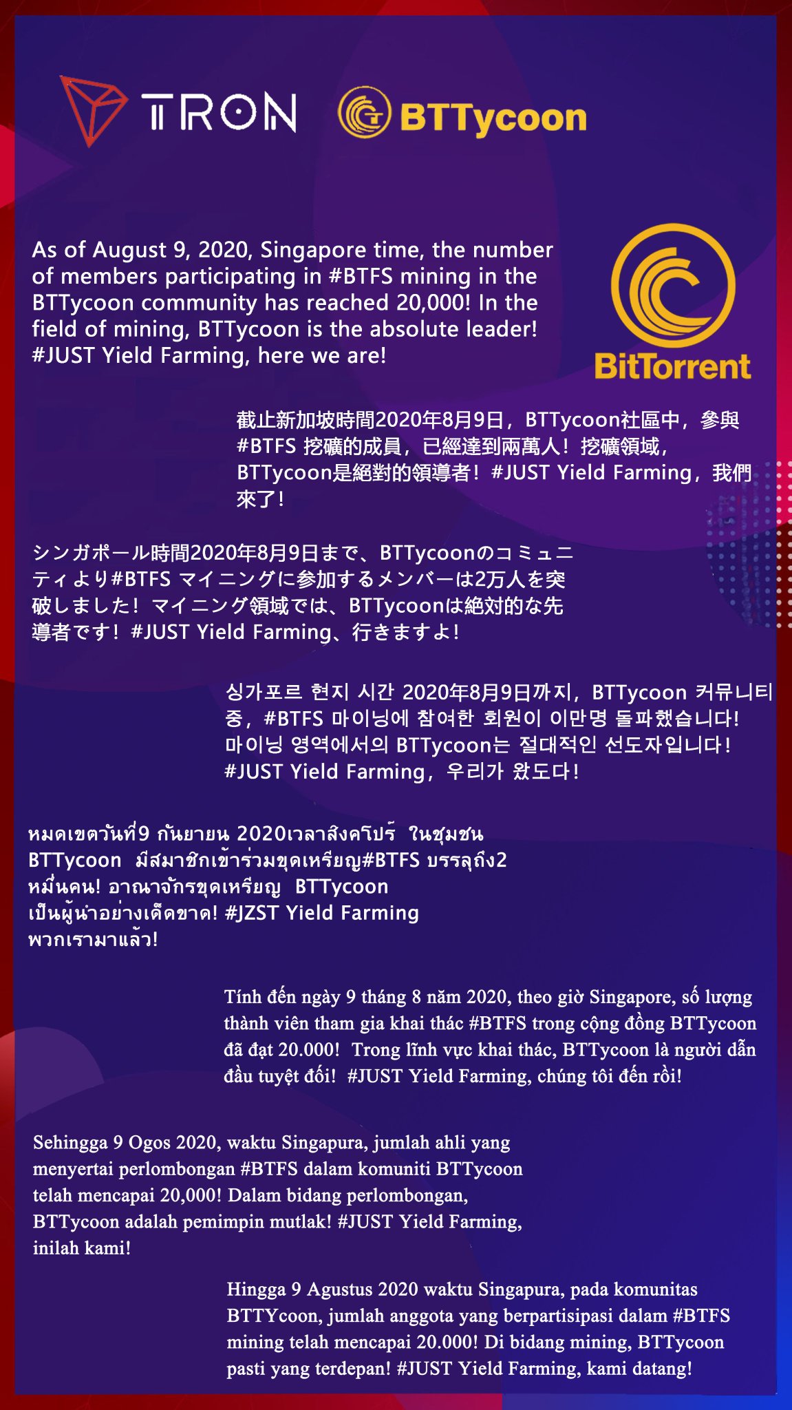 Bttycoon On Twitter As Of August 9 2020 Singapore Time The Number Of Members Participating In Btfs Mining In The Bttycoon Community Has Reached 20 000 In The Field Of Mining Bttycoon Is
